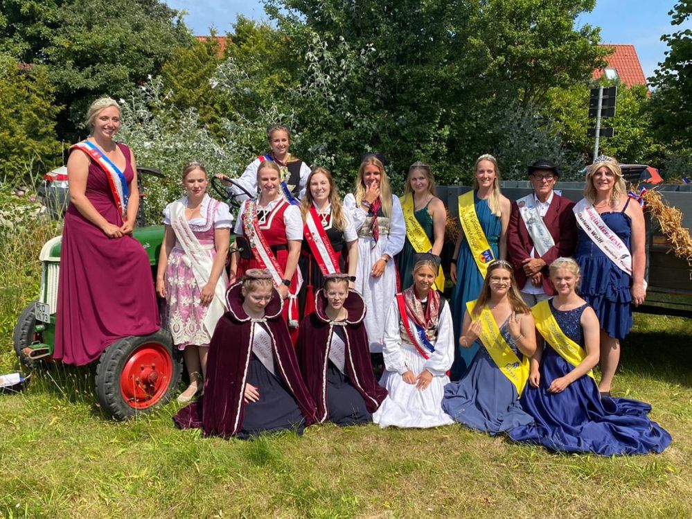 Mit elf historischen Traktoren und fünf zeitgenössischen Anhängern haben wir auf dem Schönberger Marktplatz die Besucher begrüßt. Gegen 12:00 wurden die Korntage offiziell eröffnet, die alte Kornkönigin Kaija Maus übergab ihr Amt an die neue Kornkönigin Henriette Nebendahl und die neue Kornprinzessin Jane Bruhn.