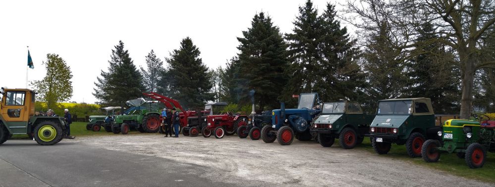Der 03. Oktober ist in nicht-Krokau Jahren unser Rallye-Tag. Nun war zwar gerade erst Krokau – dennoch passten Wetter und Termin perfekt für eine Tour durch die Probstei. Und trotz der erst verhaltenen Rückmeldung am Clubabend fanden sich dann um 13:00 insgesamt 18 Trecker vorm Irrgarten zusammen. Darunter fünf Lanz Bulldog, ein Allgaier, ICH, je zwei Fendt und Deutz, Güldner, Fahr, MB-Trac und vier Unimogs. Außerdem wurde der Viehhänger mit der Milchausstellung zum Winterlager nach Hohenfelde mit genommen.