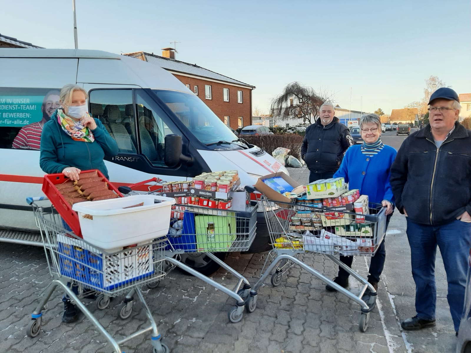 Am Mi, 14.12. wurden die von dem Team benötigten Lebensmittel eingekauft und durch unseren Vorsitzenden Herrn Perkams (rechts) an die Leiterin der Schönberger Tafel Frau Moltzen (2. vr.) übergeben.
