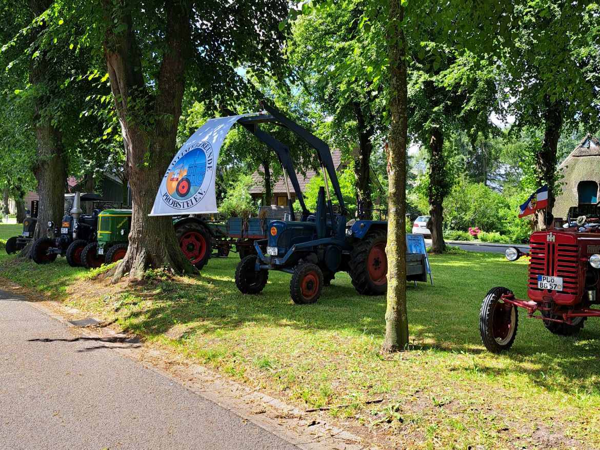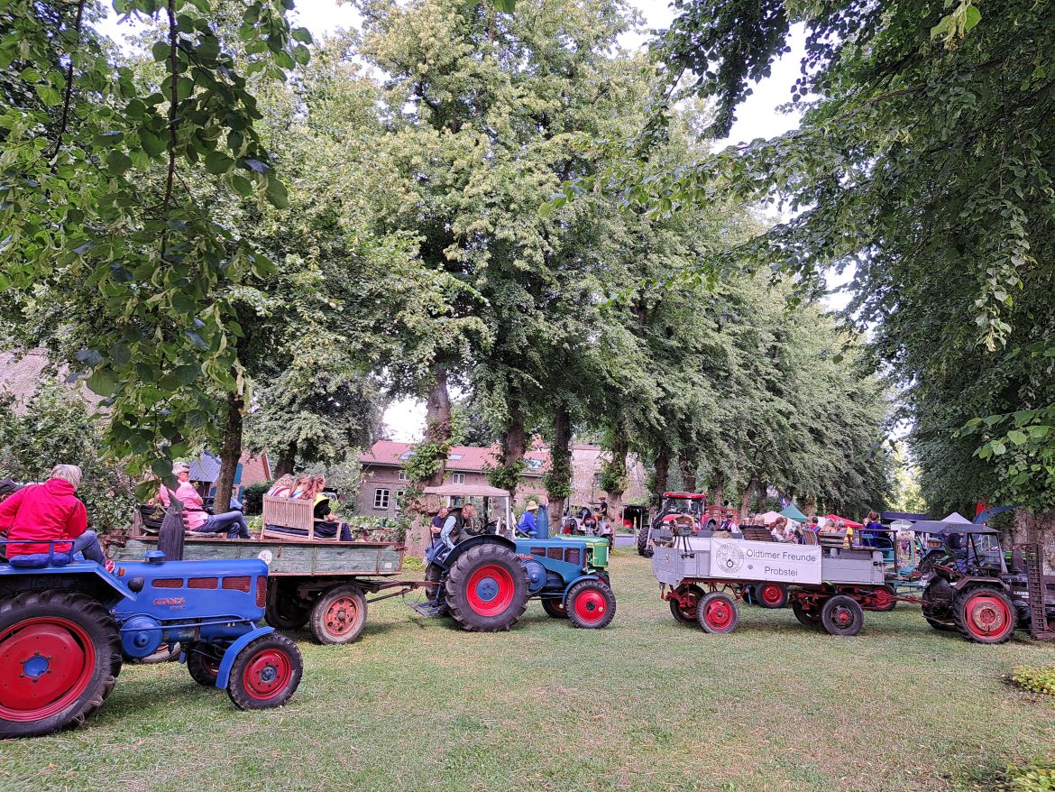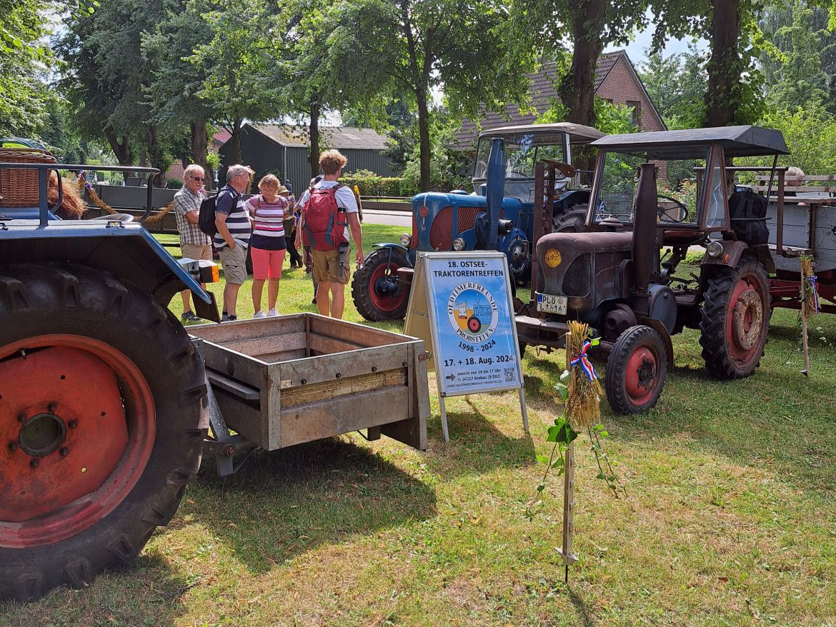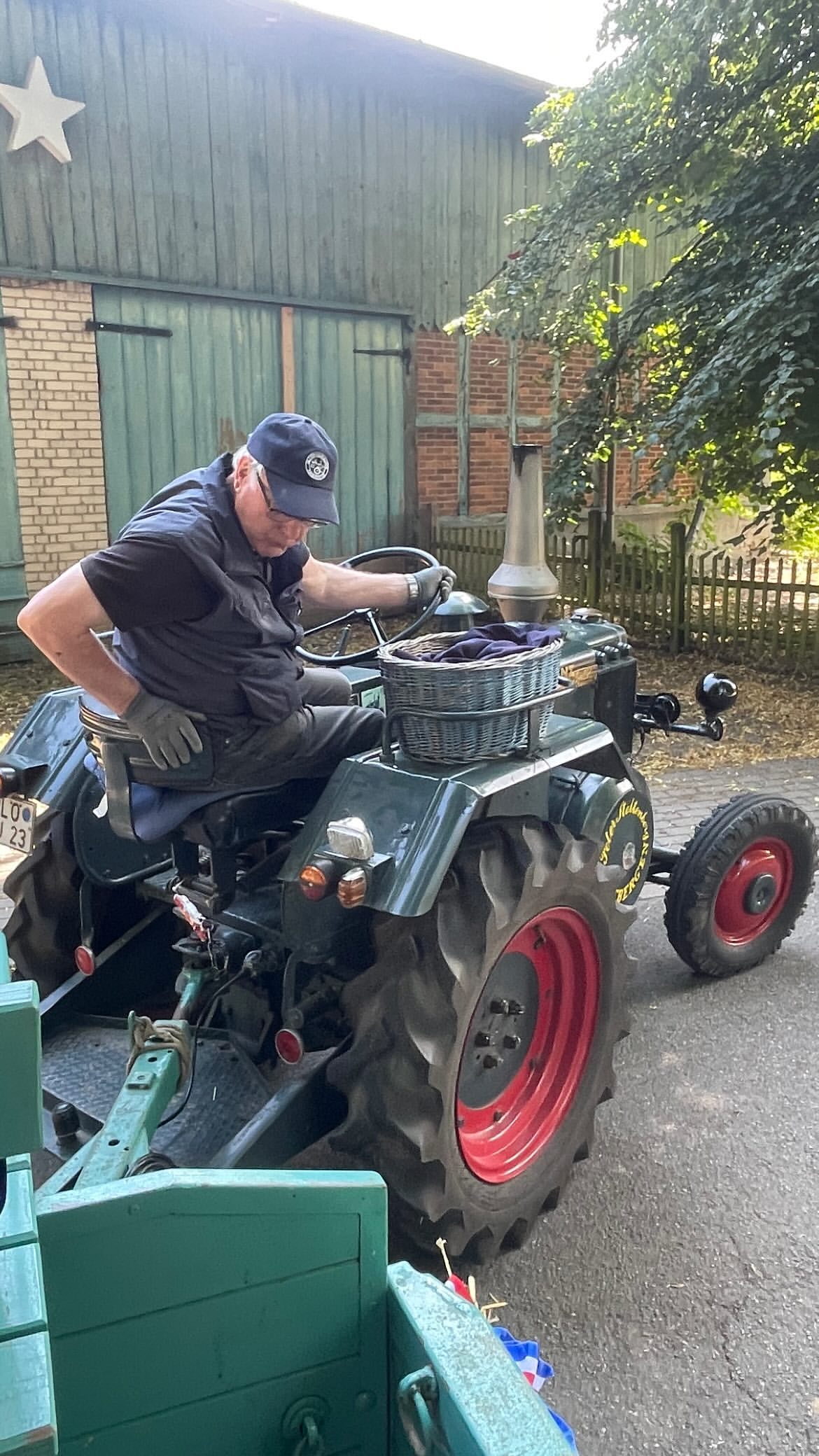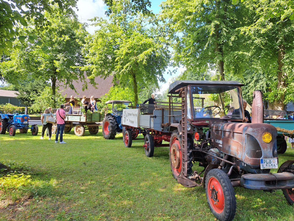 Am 27. Juli 2024 wurden die Korntage in Barsbek eröffnet. Wir waren mit 11 alten Treckern dabei. Wie in den letzten Jahren durften wir wieder die alte Kornkönigin Jane, die neue Kornkönigin Anna, die Prinzessin Henrike und weitere Produkthoheiten mit unseren Gespannen durch die wunderschöne Probstei fahren. Darunter waren: Erntemajestätinnen Vier- und Marschlande, Rapsblütenkönigshaus Fehmarn, Gettorfer Rapsblütenkönigin, Lamm-Majestäten Nordfriesland und Pellkartoffelhoheiten Hohenlockstedt. Die Damen wurden rechtzeitig zu den Feierlichkeiten auf dem Dorfplatz abgesetzt. Wir konnten im Anschluss mit unseren Traktoren einen kleinen Vorgeschmack auf unsere Veranstaltung in Krokau am 17./18. August geben. Mal wieder eine schöne Eröffnung und ein würdiger Auftakt für die Korntage 2024.