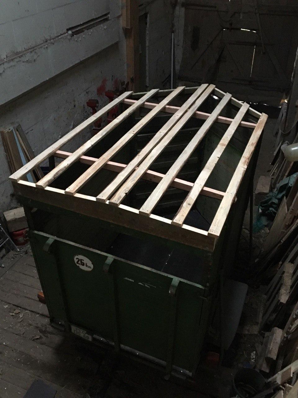 In der Werkstatt wurde einen stabiler Unterbau aus Vierkantrohren zum Transport mit der Palettengabel verschraubt.