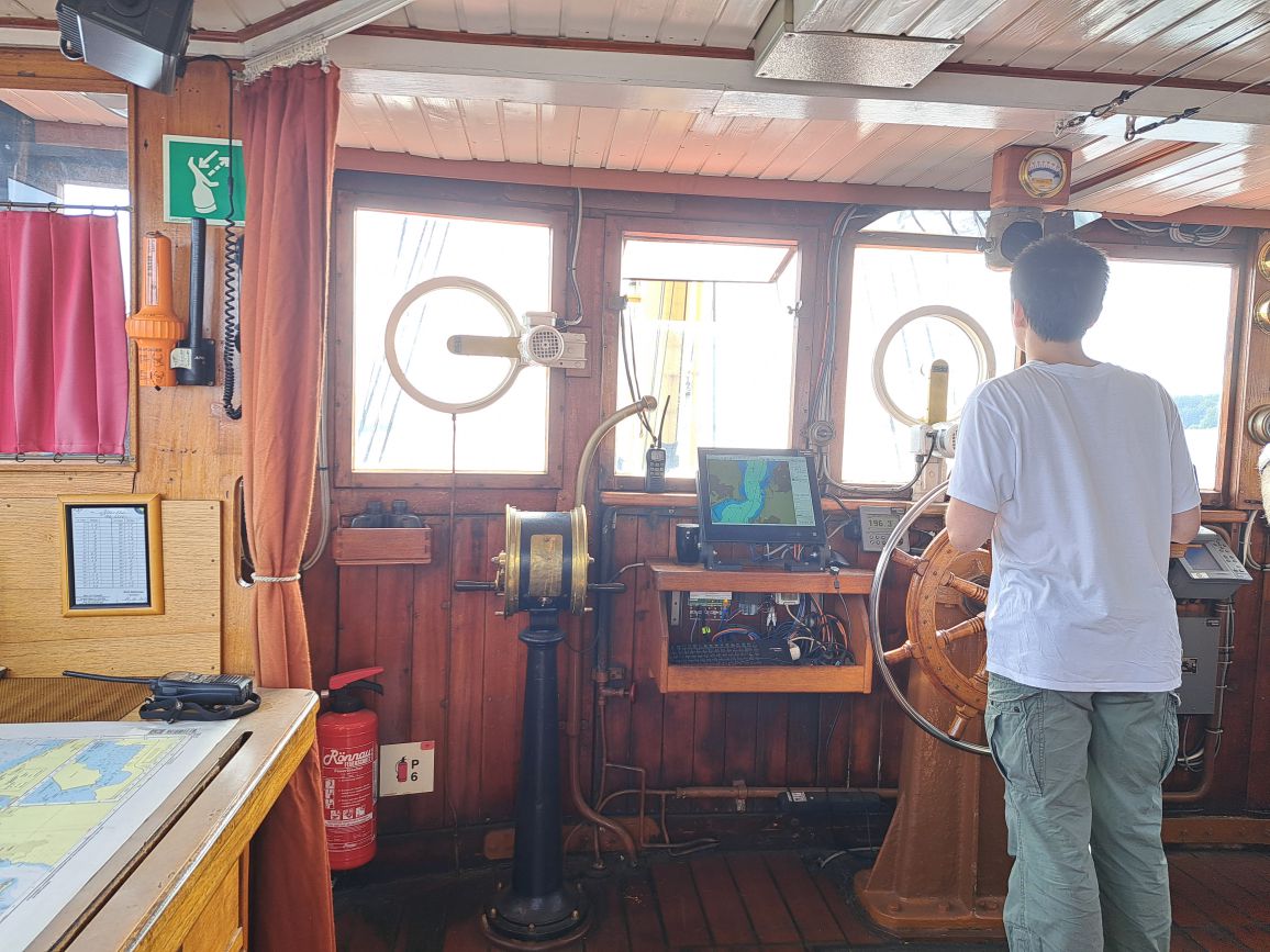 Während der Fahrt konnten alle Teile des Schiffs betreten werden. Besonders im Maschinenraum standen freiwillige bereit, die durchgehend Fragen beantwortet und ihre Technik erklärt haben. Doch auch an Deck hatten wir viel Spaß. Bei Kaltgetränken und Kuchen wurde das schöne Wetter und der Blick über die Förde genossen. So vergingen die zwei Stunden sehr schnell.