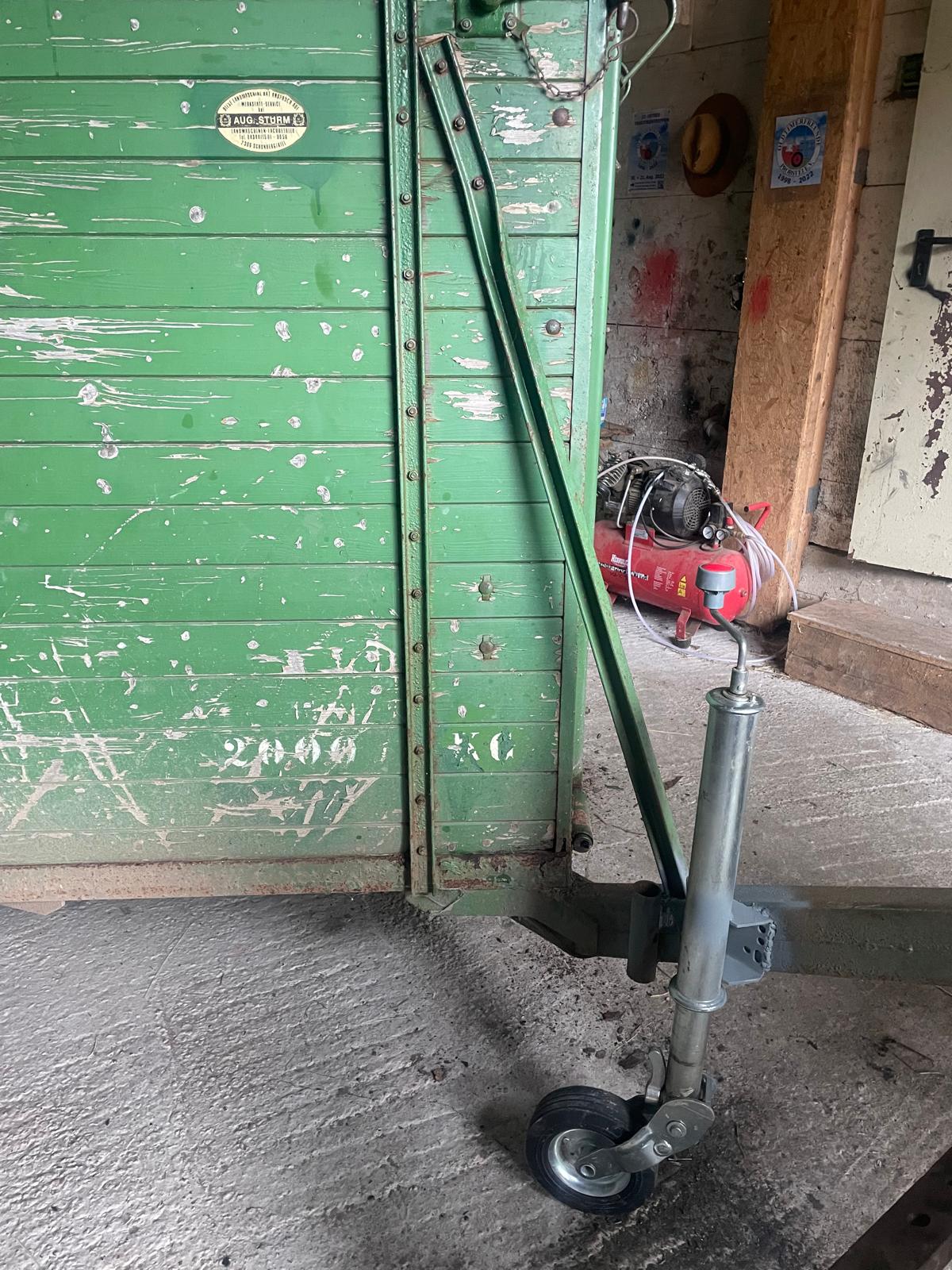 Unser Anhänger für die Milch hatte einen Stützfuß mit einer kleinen Fußplatte und die Höhenverstellung war nur über Hochheben der Deichsel und einsetzen von Federsteckern möglich. Das Gewicht des schweren Hängers drückte die Fußplatte regelmäßig in den Boden und ein Anheben der Deichsel von Hand war nicht möglich. Jetzt hat Jörn einen Stützfuß an die Deichsel geschweißt, mit einem größeren Rad und einer Kurbel zur problemlosen Höhenverstellung und Anpassung an jede Zugmaulhöhe. Der Milchanhänger ist bereit- Krokau kann kommen!