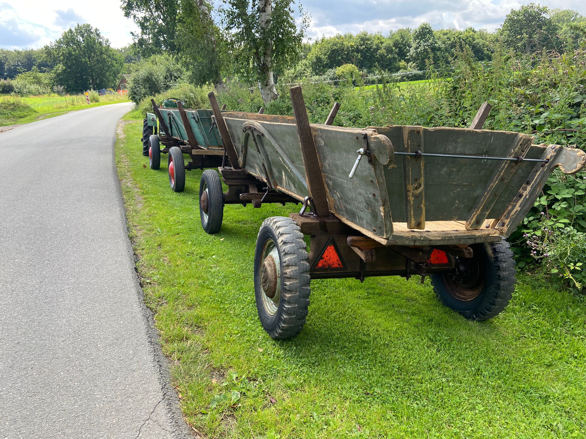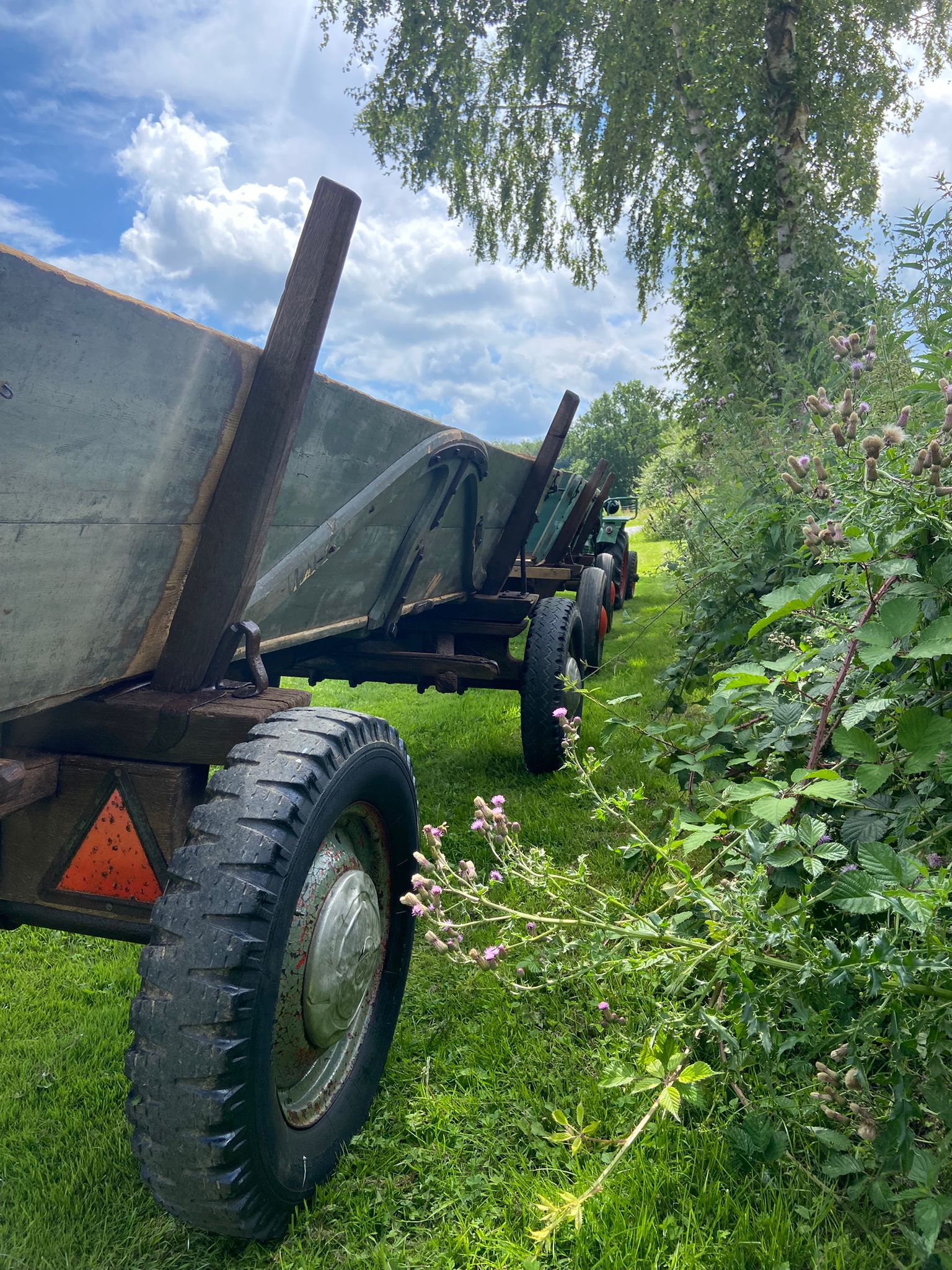 Das Fuhr-und Lohnunternehmen ist startklar … die Getreideernte kann eingeholt werden … zum Fuhrpark der Oldtimerfreunde Probstei gehören jetzt zwei Gummibereifte Leiterwagen die zum Transport der Gaben für das Projekt Lanz Dreschmaschine gehören. Organisiert von Stefan und zu sehen am 17. / 18. August in Krokau.
