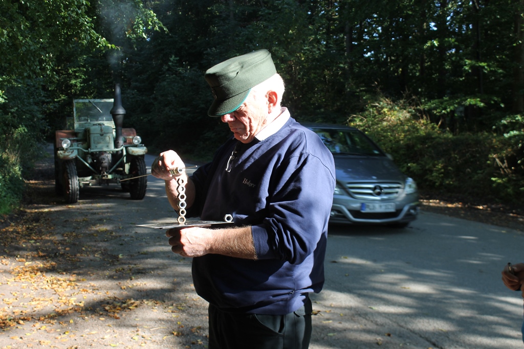 Nachdem es am „Rastorfer Kreuz“ Kaffee und Kuchen gab, wurde die 2. Etappe in Angriff genommen. Gegen 17:30 kamen schließlich alle wieder am Hof Stoltenberg an, wo es eine letzte Aufgabe gab, die es in sich hatte. Vier Motorenteile mussten blind ertastet und logisch zusammengebaut werden. Obwohl für viele Teilnehmer das Schrauben an alten Motoren keine Seltenheit ist, kam der eine oder andere hier an seine Grenzen.
