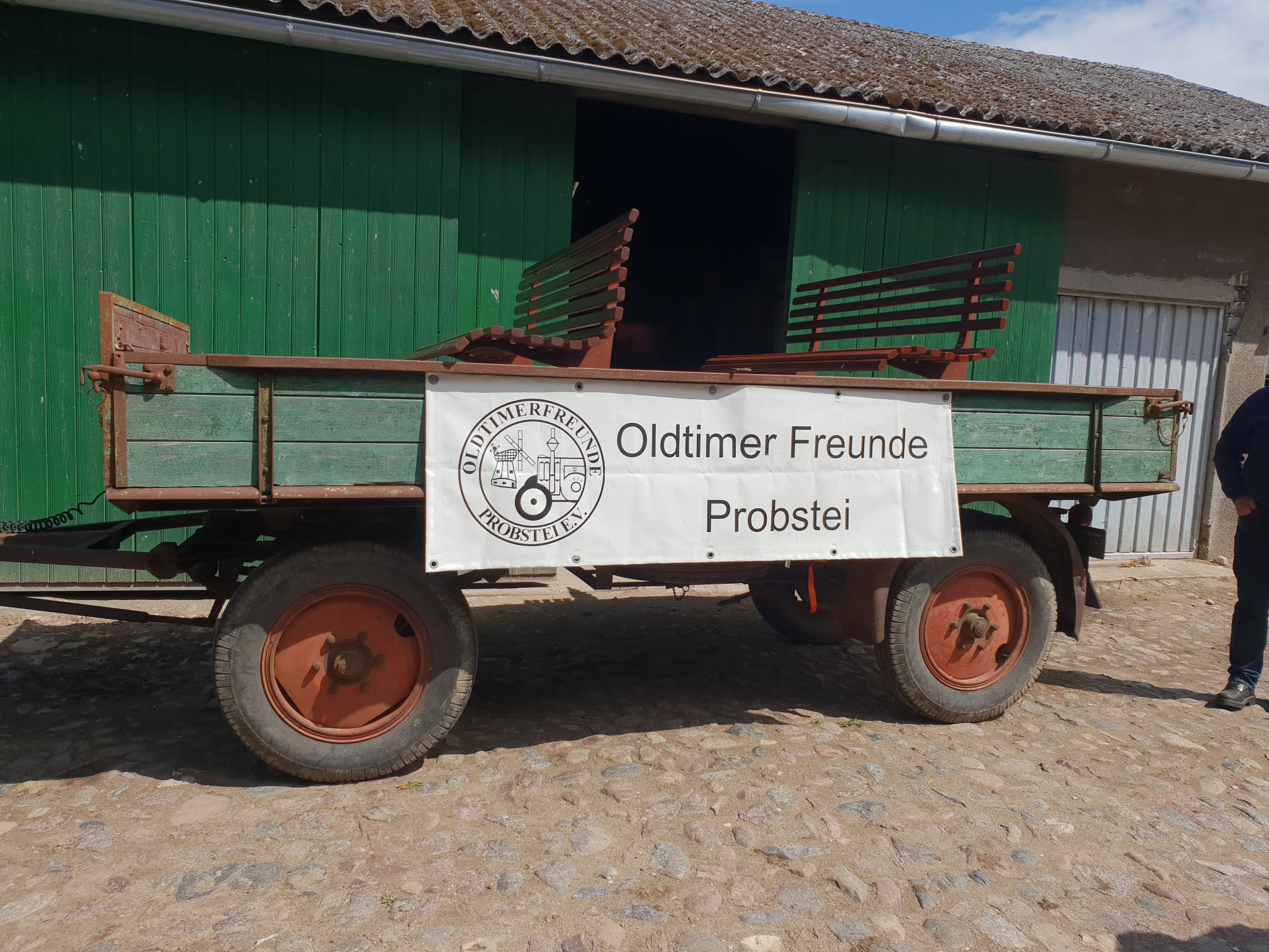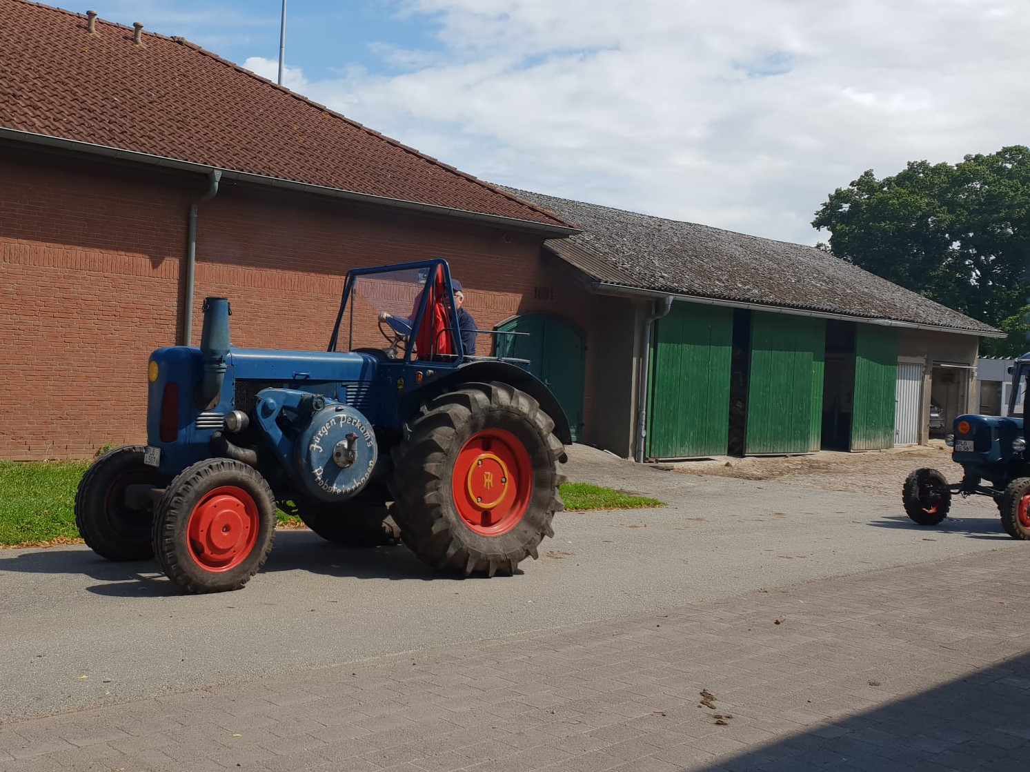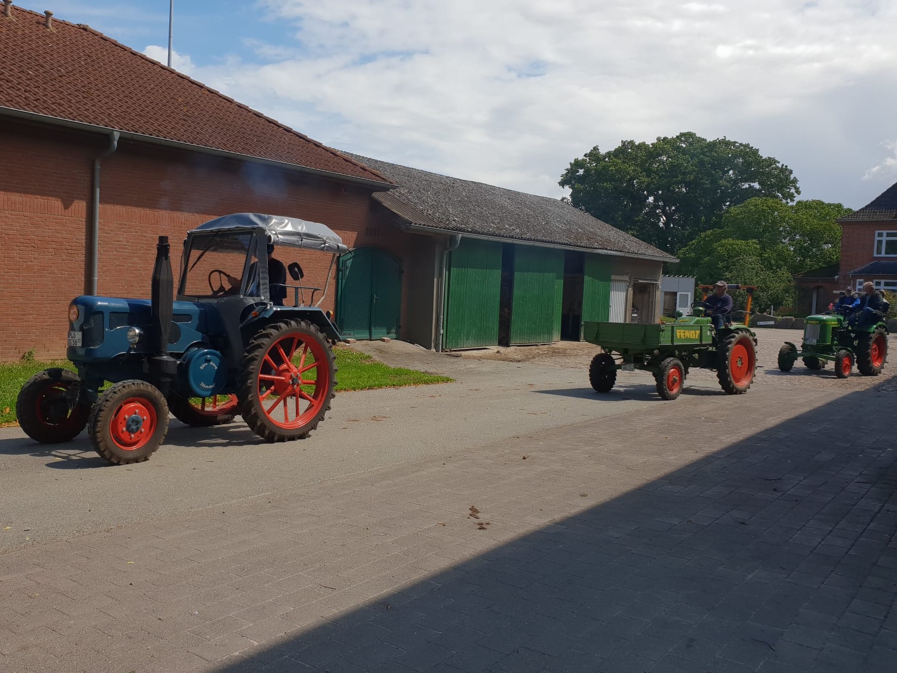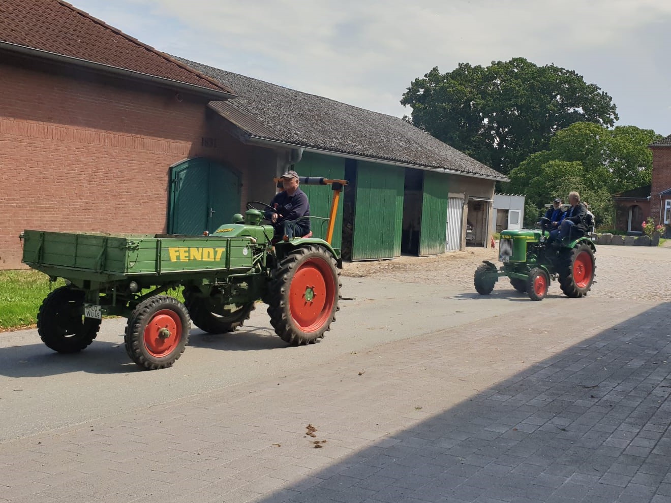 Wir hatten die Aufgabe, die Majestäten (Kornkönigin, Prinzessin, Nachfolgerin und Gäste) mit unseren Gespannen zur Veranstaltung zu bringen. Dafür hatten sich zehn Trecker in Passade eingefunden. Für die Kornmajestäten und die Gäste (Weinkönigin Munster, Heideblütenkönigin Wittorf, Pellkartoffelhoheiten Hohenlockstedt, Rapsblütenkönigin Fehmarn,...) waren fünf geschmückte Kornhänger vorbereitet. Gemeinsam ging es dann also durch die Kornfelder über Fiefbergen zurück an den See nach Stoltenberg. Am See haben bereits zwei Boote auf die Majestäten gewartet.