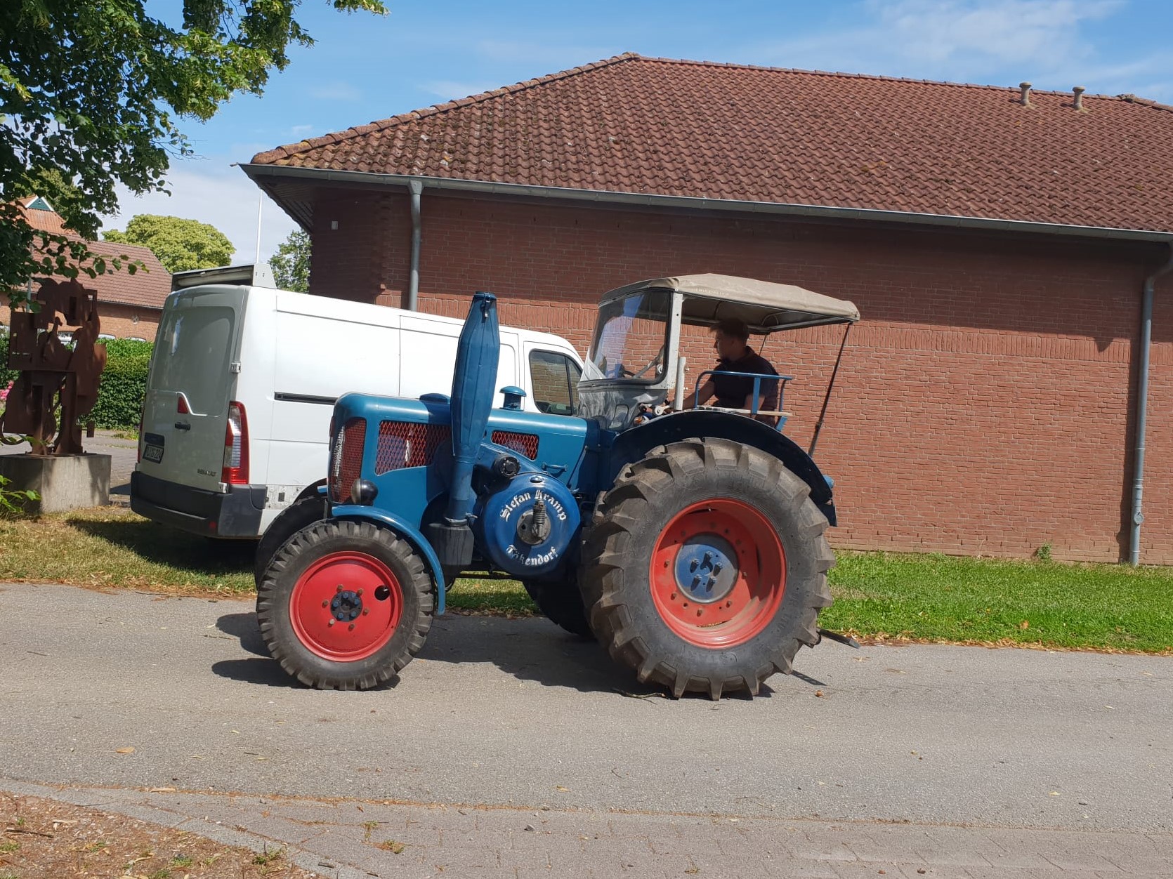 Trotz des wechselhaften Wetters hatten sich auf der Festwiese bereits viele Leute angefunden. Während unsere Schlepper auf dem Sportplatz die Blicke auf sich gezogen haben, konnten wir also die offizielle Eröffnung der Korntage mit einer Wurst genießen.