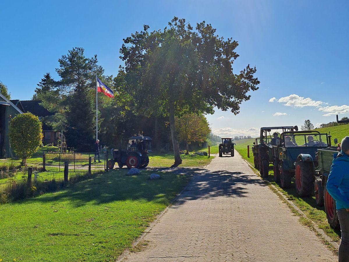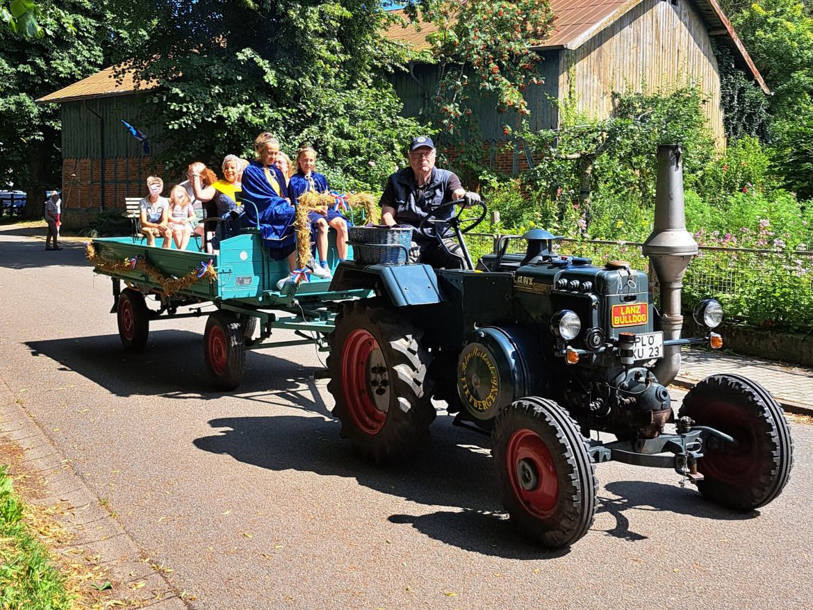 Am 27. Juli 2024 wurden die Korntage in Barsbek eröffnet. Wir waren mit 11 alten Treckern dabei. Wie in den letzten Jahren durften wir wieder die alte Kornkönigin Jane, die neue Kornkönigin Anna, die Prinzessin Henrike und weitere Produkthoheiten mit unseren Gespannen durch die wunderschöne Probstei fahren. Darunter waren: Erntemajestätinnen Vier- und Marschlande, Rapsblütenkönigshaus Fehmarn, Gettorfer Rapsblütenkönigin, Lamm-Majestäten Nordfriesland und Pellkartoffelhoheiten Hohenlockstedt. Die Damen wurden rechtzeitig zu den Feierlichkeiten auf dem Dorfplatz abgesetzt. Wir konnten im Anschluss mit unseren Traktoren einen kleinen Vorgeschmack auf unsere Veranstaltung in Krokau am 17./18. August geben. Mal wieder eine schöne Eröffnung und ein würdiger Auftakt für die Korntage 2024.