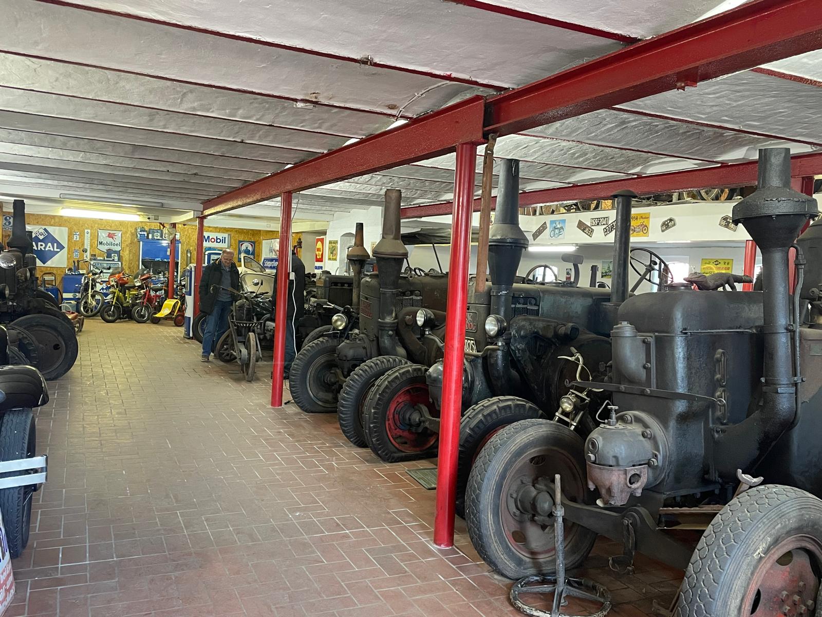 Das erste Ziel war „Rasch's Jahrmarktmuseum“ – ein privates Museum mit 300 Jahren Jahrmarktgeschichte. Eine mittlerweile sehr enge Halle voll mit Fahrzeugen, Modellen, Schildern und vielen weiteren Ausstellungsstücken. Rico hatte zu vielen Stücken eine Geschichte zu erzählen. Während die Zugfahrzeuge für einige am interessantesten waren, konnten wir auch sehr viel über das Schaustellerleben an sich herausfinden (etwa in dem den alten Schaustellerwagen der Familie Rasch). Aber auch die Kuriositäten, die man damals auf Jahrmärkten gezeigt hat (etwa Wachsfiguren von bekannten Persönlichkeiten), die Masse an Karussellpferden oder auch die handgemachten und funktionsfähigen Modelle von Karussells sind uns in Erinnerung geblieben. Im Museum stehen auch mehrere Motorräder für das Steilwandfahren, hier konnten wir den Kontakt zu ehemaligen Fahrern herstellen. Die Sammlung ist absolut beeindruckend – Wir bedanken uns beim Besitzer für den tollen Vormittag.