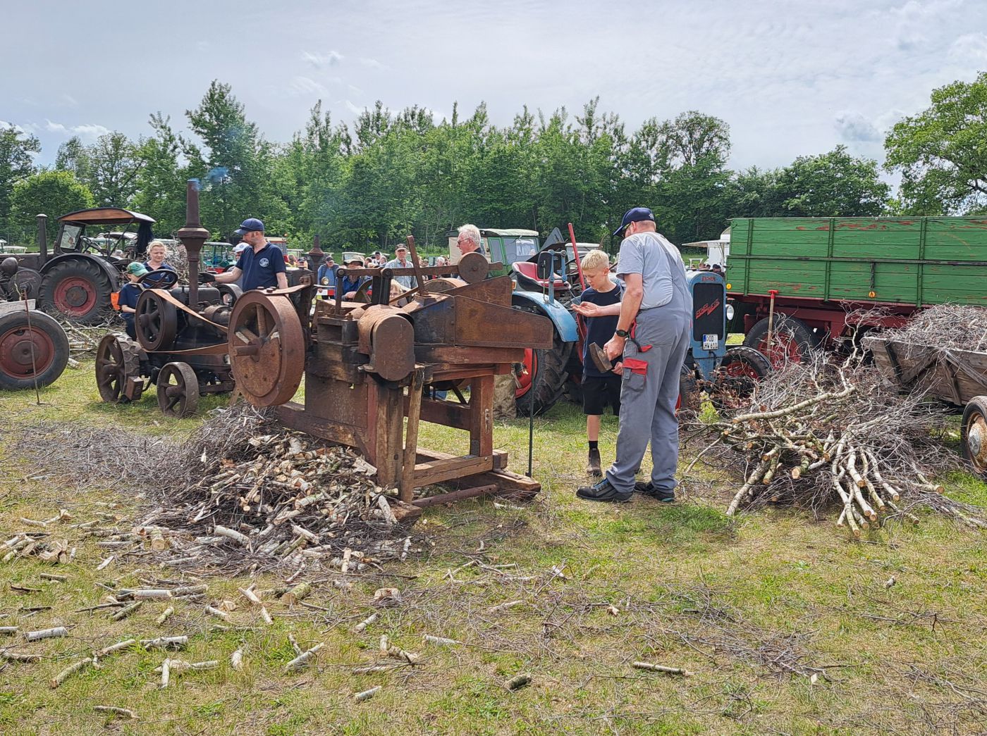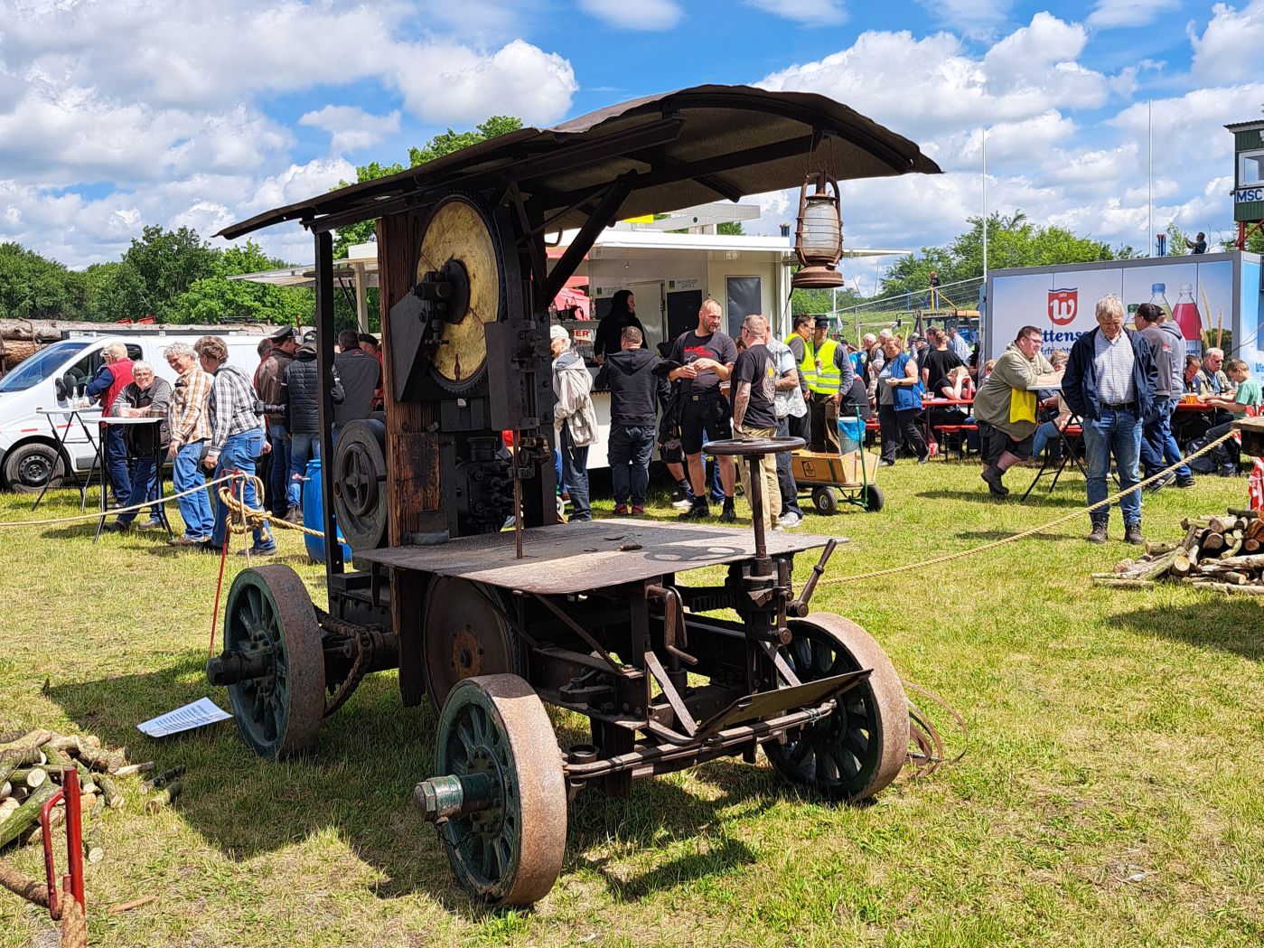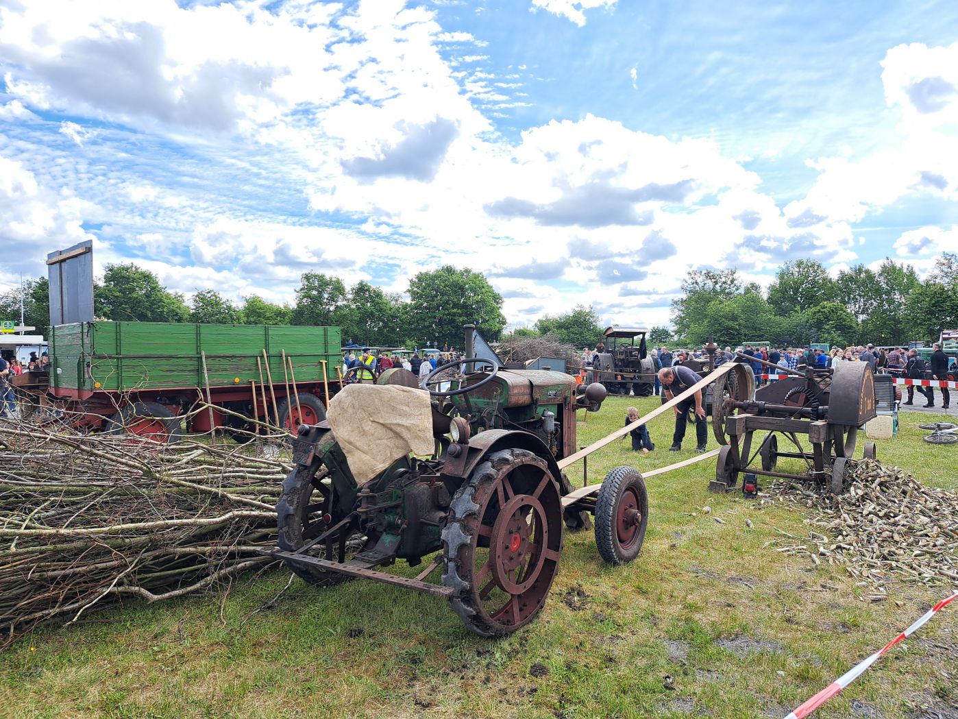 Das Thema der Veranstaltung 2025 war "Holz". Und ähnlich wie bei den Marken-Sonderschauen der letzten Jahre (MAN und Lanz) haben wir uns auch hier wieder zuverlässig eingebracht. So haben wir einen alten Buschhacker (aus den Beständen des Heimatmuseums) mit nach Brokstedt gebracht. Dieser passte sehr gut zum Lanz HM-8 Mops auf der anderen Seite des Treibriemens. Einen zweiten Buschhacker hat eines unserer Mitglieder mit nach Brokstedt gebracht. Außerdem haben wir den Jensen Holzhacker mit Deutz-Motor von unserem letzten Treffen in Krokau mit dabei gehabt.
