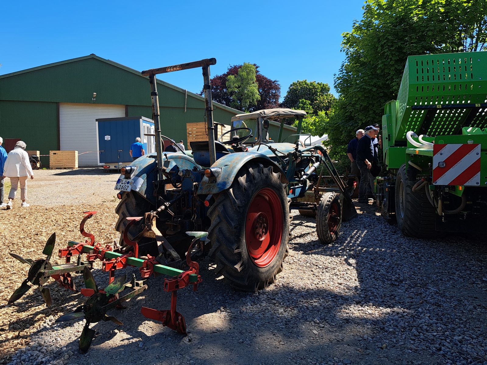 Auf dem Hoffest waren bei bestem Wetter viele lokale Betriebe (von Fleicherei bis Eisverkäufer), Kunsthandwerker und auch Vereine (Feuerwehr, Schniede Lutterbeck, Landfrauen mit Kuchen) vertreten. Die Veranstaltung war sehr gut besucht. Wir waren auch mit mehreren Geräten zum Kartoffelpflanzen angerückt, unter anderem mit einer (pferdegezogenen) selbsständigen Legemaschine, zwei Häuflern, einem Pflug und mit zwei kleinen Hängern zum Kartoffeltransport angerückt. Hier ist besonders der Vergleich zur modernen und vollautomatischen Legemaschine beeindruckend, die der Hof dazu gestellt hat: Sie legt bis zu 1ha pro Stunde. Auch beeindruckend war die Logistik und Lagerung, hier hat uns die Familie Bock ihre Kartofelhallen gezeigt. Eine tolle Veranstaltung, gerne wieder.
