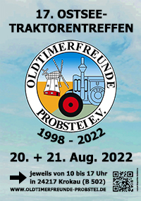 Nach vollen vier Jahren Pause geht es endlich wieder los. Das Traktorentreffen an der Krokauer Mühle geht in die 17. Auflage. Auf fast 7000m² zeigen die Oldtimerfreunde Probstei e.V. Landtechnik aus den letzten 100 Jahren. Das Treffen ist bereits seit vielen Jahren für die vielen Vorführungen bekannt (an allen Ecken zeigen wir unsere Maschinen in Aktion). 2022 soll das erstmals das mobile Sägewerk in Aktion gezeigt werden. Es stand bis 2015 in Stakendorf, wurde seitdem komplett zerlegt und auf einen umgebauten Tieflader neu aufgebaut.