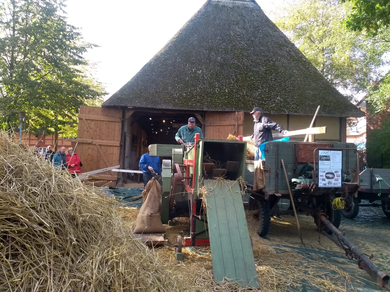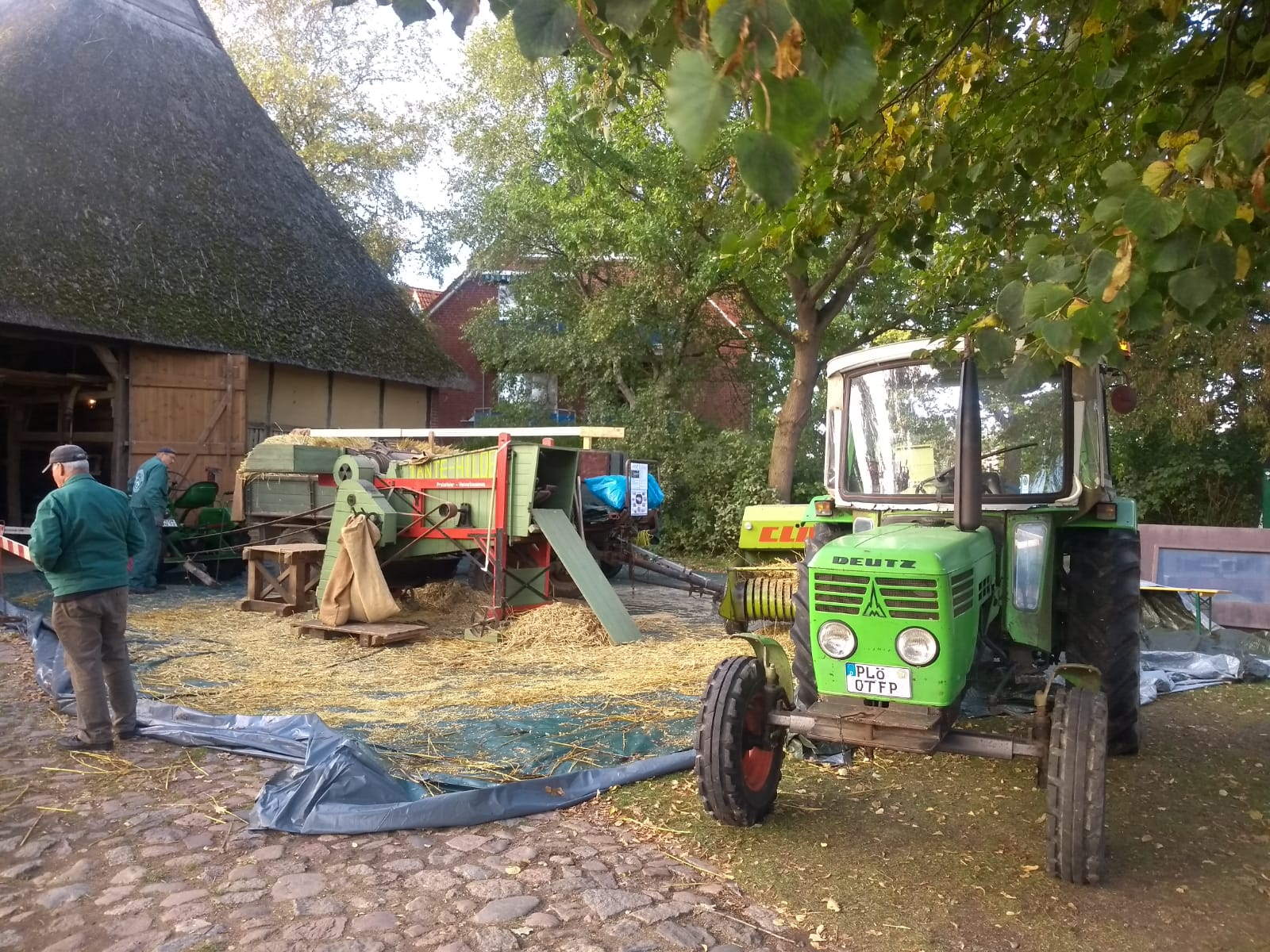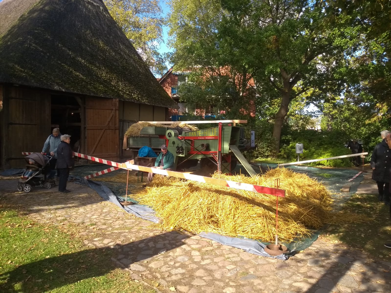 Das Landeserntedankfest fand am 5. und 6. Oktober 2019 in Schönberg statt. Wir haben beim zweitägigen Event auf dem Gelände des Probstei-Museums gedroschen.